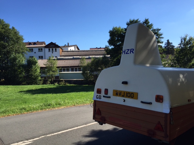 Philip Walker and Andy Smart set off from the Club early on Monday 29th August to collect the Club's new Ka 21 from Schleicher's factory at Poppenhausen, Germany (east of Frankfurt). The photo is of the trailer parked on the road today, below the factory. They plan to be be back at Aston Down on Friday. The glider will be on ground risk insurance only and will not be flown for a few weeks because the paperwork has to be turned around with the CAA, and we want the annual maintenance date to run from October not September.