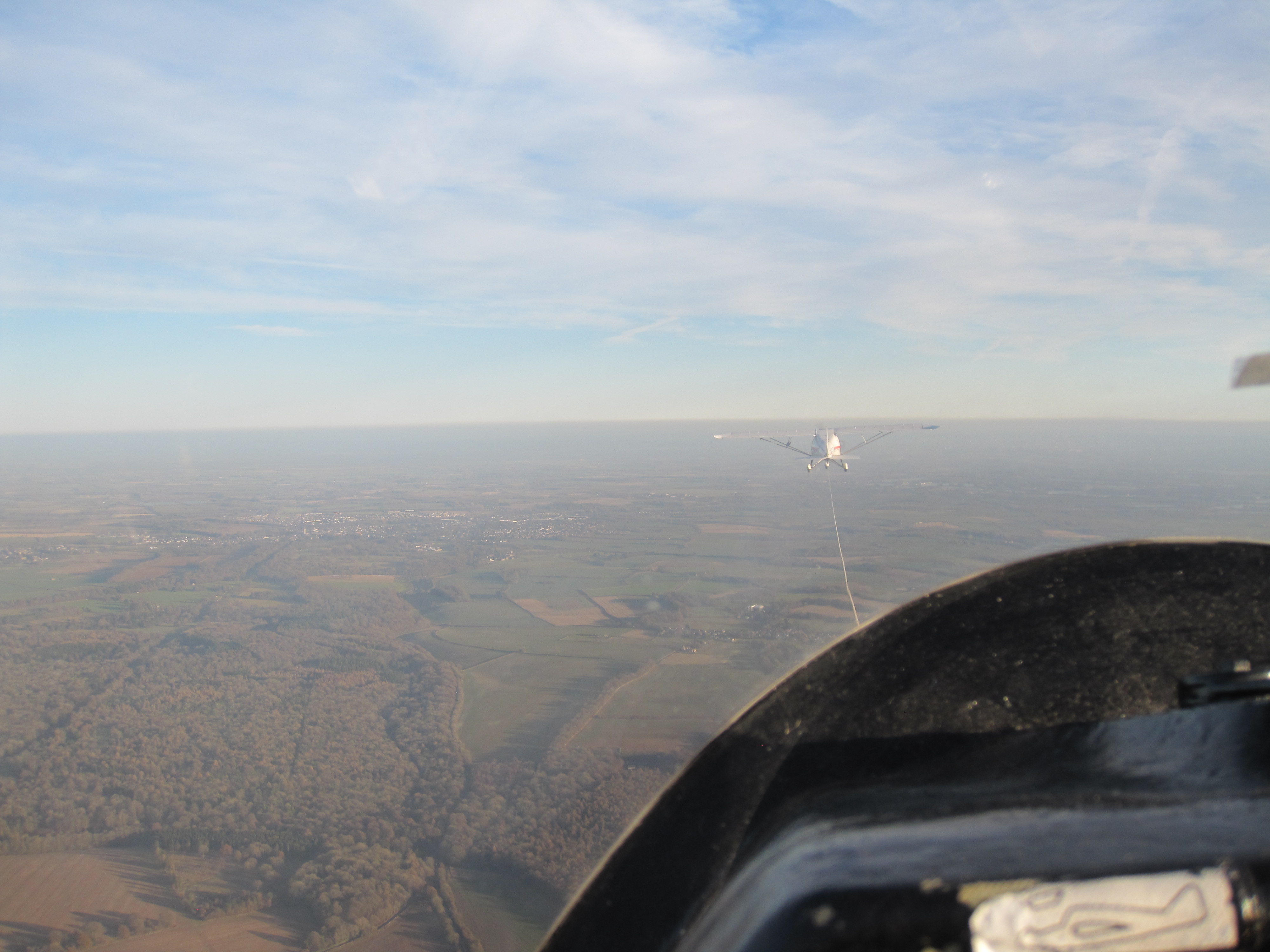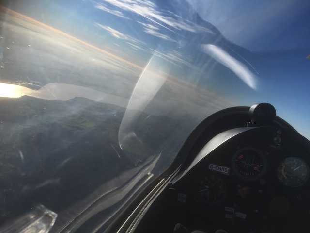 A busy day with trial lessons and with winch launches up to 1600' on the short runway a good time was had by all. Several club members had aerotows in the K23 as did Andy Smart in the Cirrus, this time just to 3000' . Jonathan Apperley completed his winter refreshers, and also took an aerotow, the photo below was taken in the smooth air above the 1500' inversion. Thanks to all who helped.