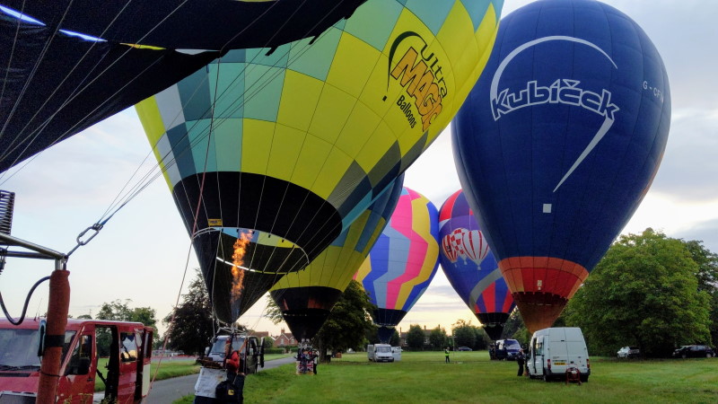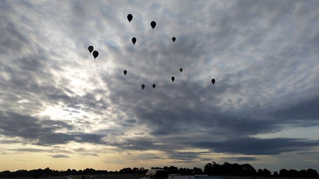 For the past week we have been hosting the British National Balloon Championships, an event that is entirely compatible with gliding because flights take place before we have got out of bed or after we've finished flying. Thirteen balloons took part but the weather was awful for most of the week with just two flights on one day. Both flights involved remote starts and finishes so Aston Down didn't see much action. The pictures show an early morning launch at Frampton on Severn and the balloons over a target on Minchinhampton Common.