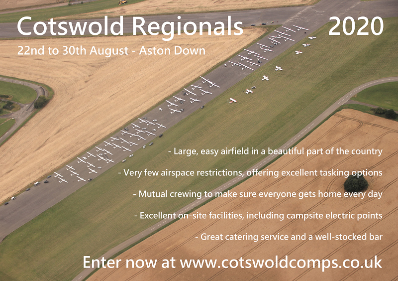 We are hosting a Regional Championships in August 2020. Regionals are open to all cross-country pilots with a silver badge and are an excellent way to advance your cross-country flying.