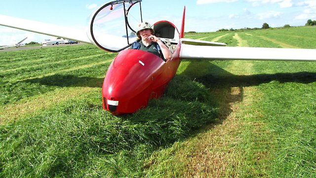 Thankfully, the grass is being cut, as Sarah Zanoni found out today, stopping in a very short distance with a pile of grass under the nose of the K13!