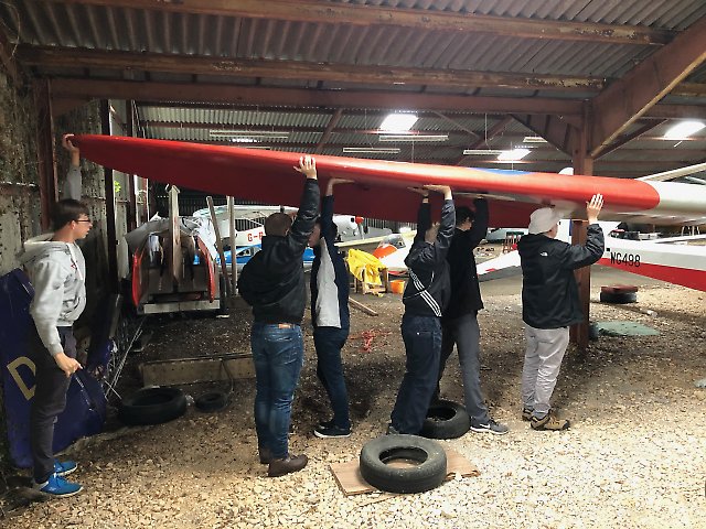 The UWE students (and Adrian) were introduced to glider rigging before flying on Saturday. At least they were dry.