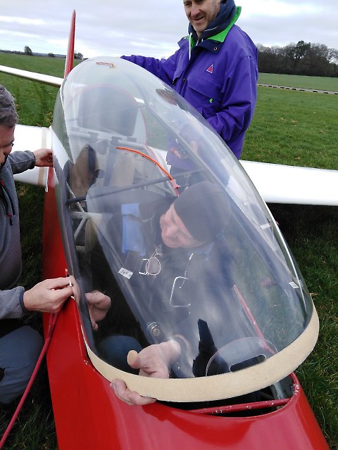 The pictures show Alistair preparing to launch and Collin being helped to refit the K13 canopy after it accidentally slipped forward off its pins.