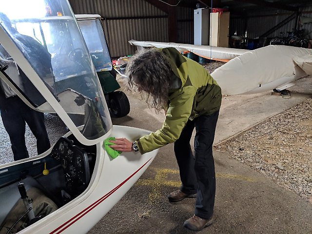 Thanks everyone for the time spent housekeeping the gliders. The untidy patchwork of electrical tape on the K21 canopy has now been removed and the club gliders have freshly polished canopies---much better.