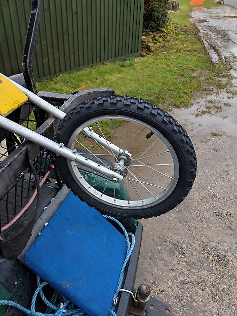 Meanwhile David didnt think the tyre on the K21 wing dolly was good enough for an MOT. I suppose it was worn through the tread, canvas and the inner tube has long since worn through. We now have a posh new tyre, much betterer, wheely good.
