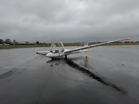 Flying started about 1.30, an efficient team made it possible for us to fly 18 times in between some very intersting showers.