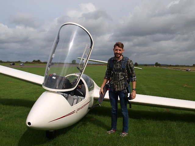 Posted 15-10-17, 08:38 by timboWhat a grey day. The airfield was wreathed in rain and low cloud for most of the morning and it wasn't until mid-day that we could finally get airborne. Thereafter the two-seaters were kept busy flying an enthusiastic group of UWE students and Indi and Lee on the one-day course. We didn't quite have to line up car headlights for the last landing, but it was dark by the time we got the toys away. Many thanks to Richard Cawsey for driving the winch.
