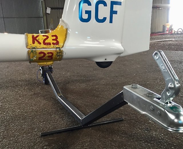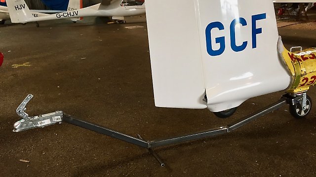 Posted 23-05-17, 21:15 by DGR88Thanks to John McWilliam for organising the re-manufacture of tow bars for the Ka 21 G-CLRT and the Ka 23 G-CGCF (pictures below). Note the crossbar holds the tow-bar upright and aligned to the holes ready to push the pin in and lock it. We have also ordered a new IMI (Czech Republic specialist manufacturer of gliding equipment) tail dolly for Ka 21 G-EENK. It should arrive in about a week (picture below).