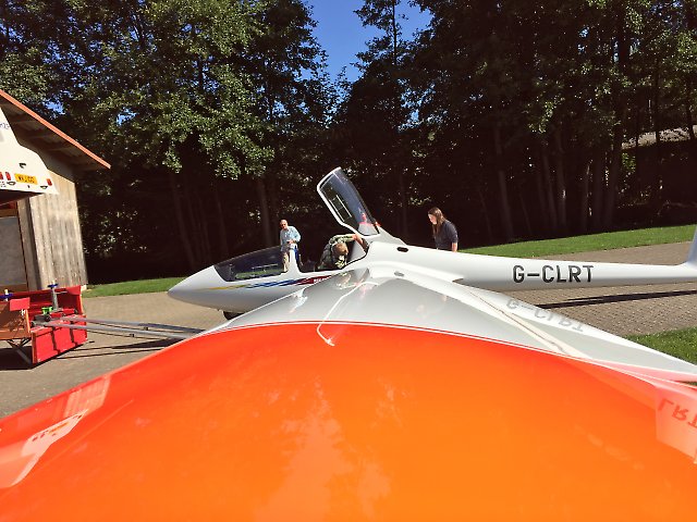 Posted 02-09-16, 23:43 by DGR88Philip Walker and Andy Smart arrived back at Aston Down late Thursday evening (1st Sept) with our new Ka 21 G-CLRT after driving from the Schleicher factory east of Frankfurt in the day. They did not take on any extra crew in the trailer or cockpit at Calais though I gather it was a close-run thing.