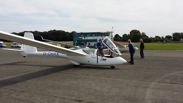 Posted 07-09-15, 10:03 by Mike RA good day's training and local soaring, with cross country for some. Doug and Lesley set off in the DG500 to visit the Isle of Wight but didn't like the look of all that water so turned back at Portsmouth, eventually landing at Wroughton after 6.5 hours.