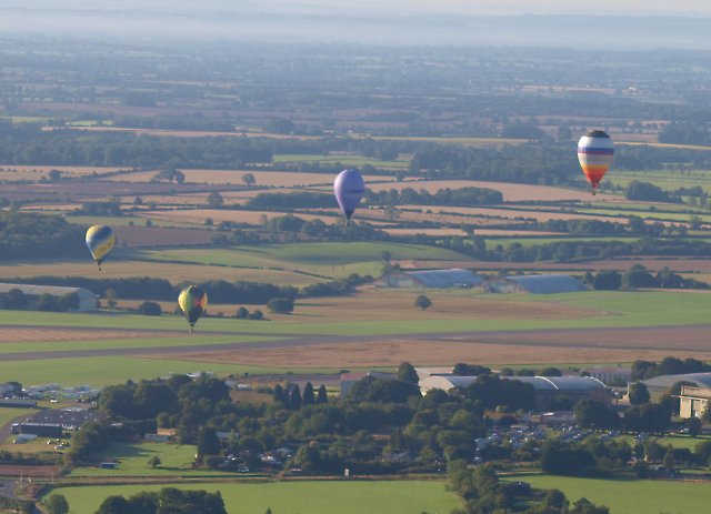 Posted 07-09-15, 07:42 by timboSometimes it is definitely worth getting up early, Those on site at 8am on Sunday were treated to a very colourful spectacle as AD was used as the landing site for a fleet of around a dozen hot air balloons participating in a competition. The balloons (including one with Simon Lucas in) had lifted off from Upton St Leonards and had had to drop markers as close as possible to crosses marked out in various fields along the way. Paul Lazenby and Tim Barnes jumped in the Falke to photograph them as they came in - the full set of photos can be seen at http://tinyurl.com/qfjoah2