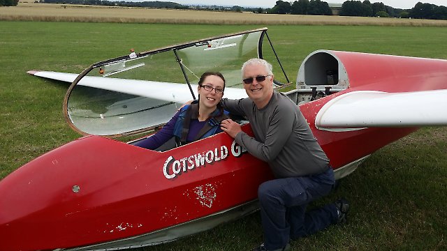 Paula finished her launch failure training and went off solo. She is pictured here with Peter ,her father. peter was celebrating his birthday so well done Paula and happy birthday Peter.