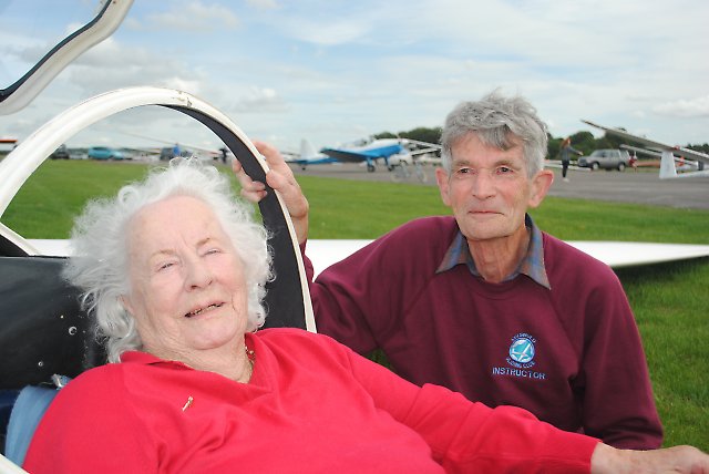 Jill had a wonderful morning, a sustained round of applause from the competitors, and then to cap it all an aerotow flight in a Ka 21 (to over 2000ft) with Mike Randle. Their combined ages in the cockpit, probably a UK record for a glider, was 181 years. And no, Mike is not 95. But Jill is a sprightly 101. A few pictures from a very emotional morning, not just for Jill but for her instructor and others as well. The last picture is after the flight.