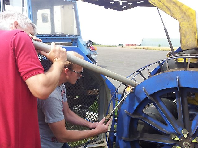 Posted 02-08-15, 20:43 by timboHalf way through the morning the winch threw a hissy-fit - a loose loop trashed the drum door and bent the drum (quite impressive actually). In the best traditions of Scrap Heap Challenge the repair was effected by pinching a door of the other winch (in bits) and some subtle engineering involving an oxy-acetylene torch, a sledge hammer and a scaffolding pole. Well done to Darren Edge for his efforts - he's much better at engineering than keeping his trousers up.